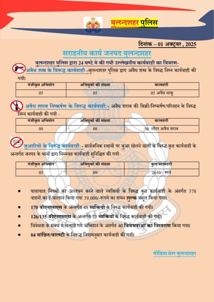 HomeUncategorized01/10/2025: जनपद बुलंदशहर में पुलिस की आज की कार्रवाई पर एक नजर