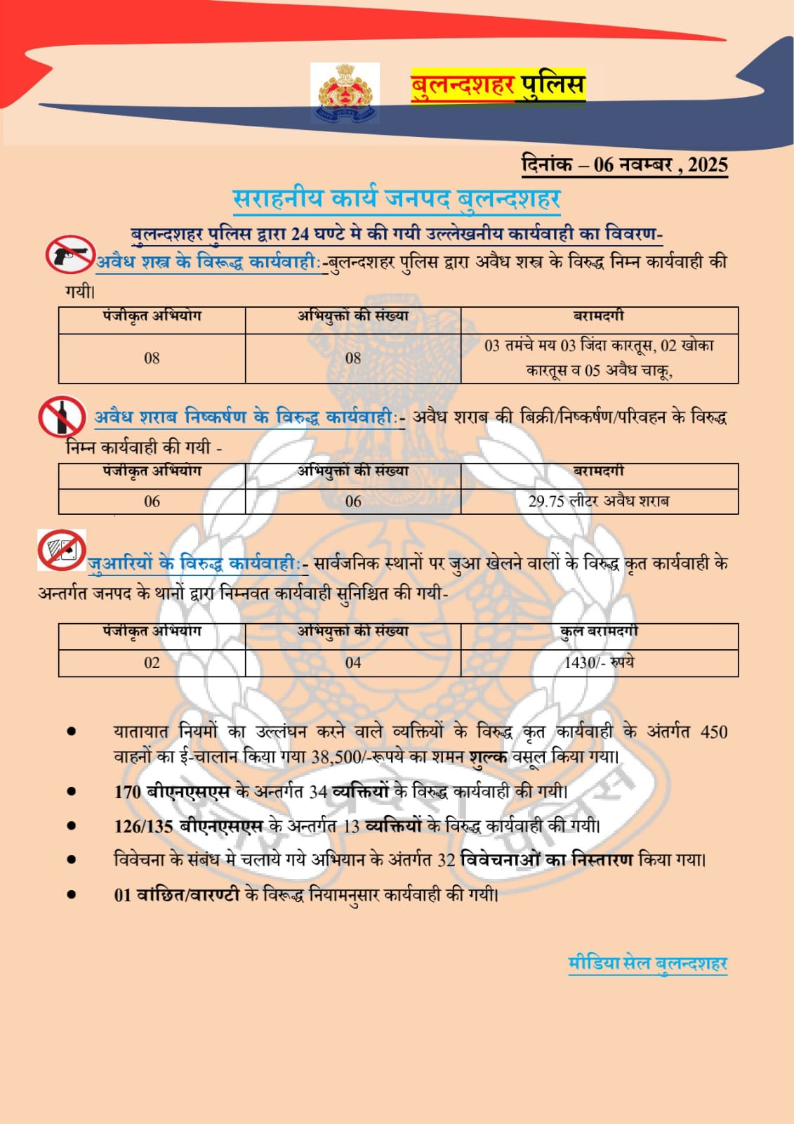 06/11/2025: जनपद बुलंदशहर में पुलिस की आज की कार्रवाई पर एक नजर
