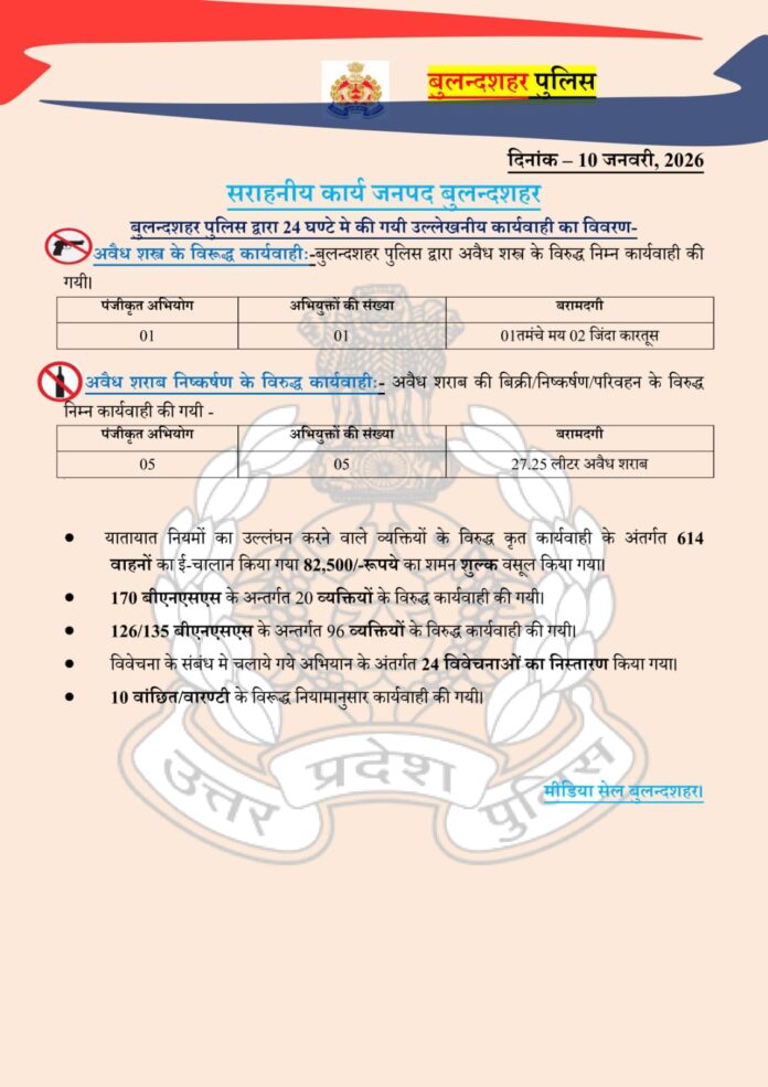 10/01/2026: जनपद बुलंदशहर में पुलिस की आज की कार्रवाई पर एक नजर
