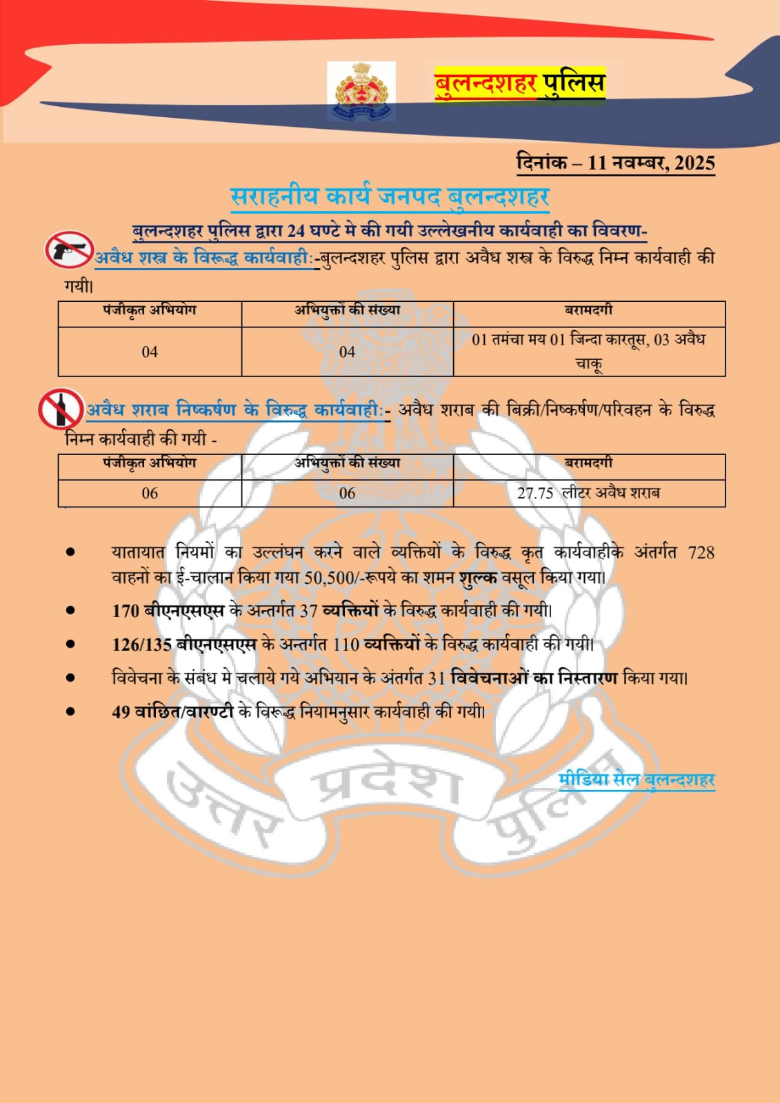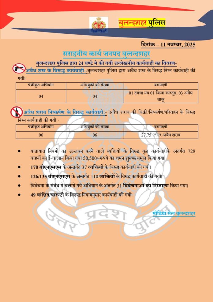 11/11/2025: जनपद बुलंदशहर में पुलिस की आज की कार्रवाई पर एक नजर