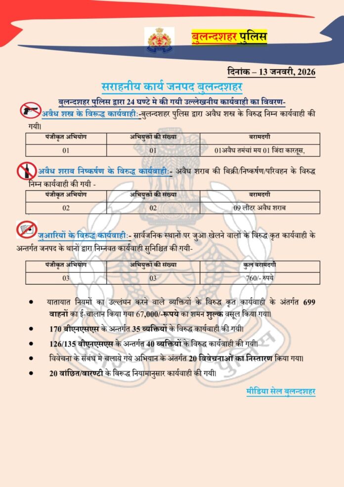 13/01/2026: जनपद बुलंदशहर में पुलिस की आज की कार्रवाई पर एक नजर