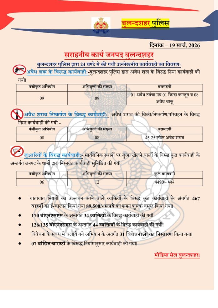 19/03/2026: जनपद बुलंदशहर में पुलिस की आज की कार्रवाई पर एक नजर