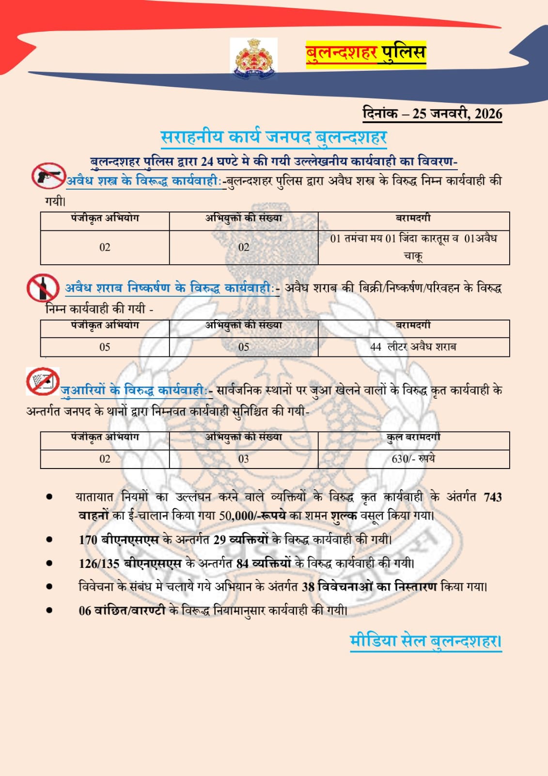 25/01/2026: जनपद बुलंदशहर में पुलिस की आज की कार्रवाई पर एक नजर