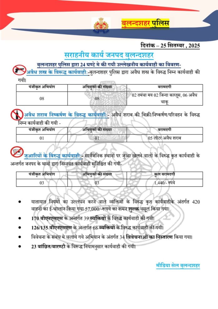 25/09/2025: जनपद बुलंदशहर में पुलिस की आज की कार्रवाई पर एक नजर