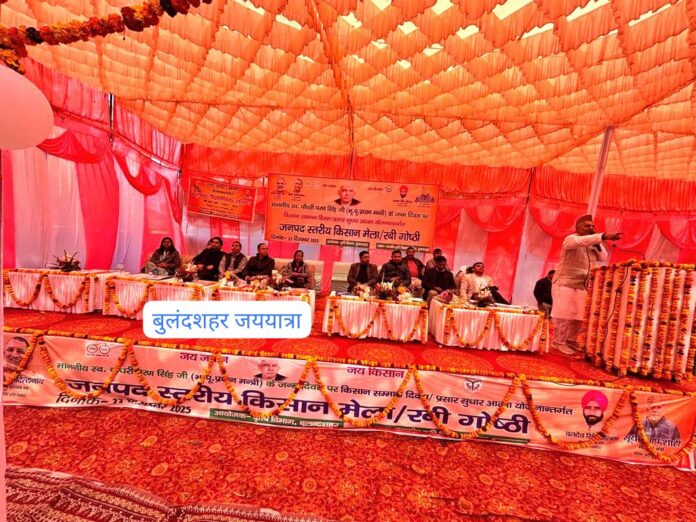 बुलंदशहर, डेस्क (जय यात्रा): जनपद बुलंदशहर में देश के पूर्व प्रधानमंत्री स्वर्गीय चौधरी चरण सिंह के जन्मदिवस के अवसर पर किसान सम्मान दिवस का भव्य आयोजन किया गया। कार्यक्रम का शुभारंभ जनप्रतिनिधियों द्वारा दीप प्रज्वलन कर किया गया। इस अवसर पर किसानों के हित में चौधरी चरण सिंह के योगदान को याद करते हुए उन्हें श्रद्धांजलि अर्पित की गई।