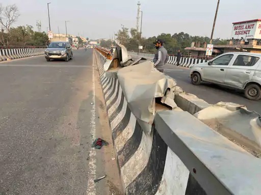 फ्लाईओवर पर उखड़ी हुई टीन शेड से बाइक सवार हुआ हादसे का शिकार, अधिकारी बरत रहे लापरवाही
