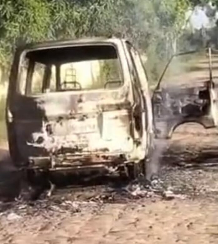 बच्चों को स्कूल से लेने जा रही वैन में लगी आग