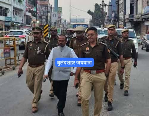 बुलंदशहर, डेस्क (जय यात्रा): जनपद बुलंदशहर में आगामी त्योहारों को शांतिपूर्ण एवं सौहार्दपूर्ण माहौल में संपन्न कराने के उद्देश्य से प्रशासन पूरी तरह अलर्ट मोड में नजर आ रहा है। इसी क्रम में उपजिलाधिकारी सदर व क्षेत्राधिकारी नगर ने सोमवार की शाम भारी पुलिस बल के साथ कोतवाली नगर क्षेत्र में सघन चेकिंग अभियान चलाते हुए पैदल मार्च किया। फ्लैग मार्च प्रमुख बाजारों, भीड़भाड़ वाले इलाकों, धार्मिक स्थलों और संवेदनशील क्षेत्रों से होकर गुजरा। इस दौरान संदिग्ध व्यक्तियों और वाहनों की गहन तलाशी ली गई। पुलिस अधिकारियों ने व्यापारियों और स्थानीय नागरिकों से संवाद कर शांति बनाए रखने की अपील की। अधिकारियों ने स्पष्ट संदेश दिया कि त्योहारों के दौरान किसी भी प्रकार की अफवाह, हुड़दंग या कानून व्यवस्था भंग करने वालों के खिलाफ कड़ी कार्रवाई की जाएगी। सोशल मीडिया पर भ्रामक पोस्ट साझा करने वालों पर भी पुलिस की विशेष नजर रहेगी।