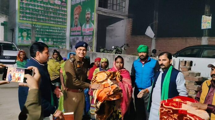 भाकियू महाशक्ति के राष्ट्रीय कार्यालय पर एएसपी ऋजुल ने कड़ाके की ठंड में गरीबों को बांटे कंबल