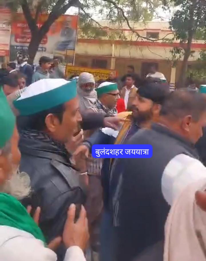 बुलंदशहर जययात्रा: जनपद बुलंदशहर के स्याना क्षेत्र स्थित ब्लाक ऊंचागांव बीडीओ कार्यालय पर भारतीय किसान यूनियन (भाकियू) के कार्यकर्ताओं के धरने के दौरान भारी हंगामा हो गया। किसानों ने धरने में अड़चन डालने और कार चढ़ाने की कोशिश का आरोप लगाते हुए भाजपा ब्लाक प्रमुख के भतीजे विशाल शर्मा की जमकर पिटाई कर दी। इस दौरान ब्लाक प्रमुख माया शर्मा के जेठ जितेंद्र शर्मा के साथ भी किसानों की हाथापाई हुई।