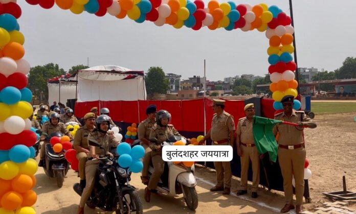 बुलंदशहर, डेस्क (जय यात्रा): जनपद बुलंदशहर में नवरात्रि पर्व के शुभ अवसर पर महिला सुरक्षा एवं जागरूकता को बढ़ावा देने के उद्देश्य से मिशन शक्ति अभियान 5.0 (द्वितीय चरण) के तहत स्कूटी रैली का आयोजन किया गया। अपर पुलिस अधीक्षक नगर द्वारा रिजर्व पुलिस लाइन से स्कूटी रैली को हरी झंडी दिखाकर रवाना किया गया।