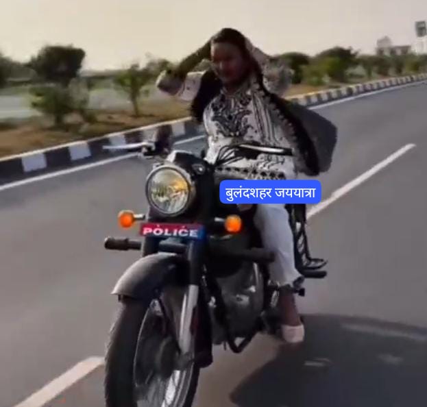 वायरल वीडियो में साफ देखा जा सकता है कि एक महिला “पुलिस” लिखी बुलेट बाइक पर सवार है और बाइक का हैंडल छोड़कर खतरनाक स्टंट कर रही है। हाईवे जैसे व्यस्त मार्ग पर इस तरह का स्टंट न सिर्फ स्टंट करने वालों के लिए, बल्कि अन्य राहगीरों के लिए भी बड़ा खतरा बन सकता है। वीडियो में महिला का बेखौफ अंदाज और सुरक्षा नियमों की खुलेआम अनदेखी लोगों को हैरान कर रही है। मामले का संज्ञान लेते हुए उत्तर प्रदेश पुलिस हरकत में आई और पुलिस ने इस वीडियो को गंभीरता से लेते हुए संबंधित यातायात प्रभारी को तत्काल जांच कर आवश्यक कार्रवाई करने के निर्देश दिए हैं।