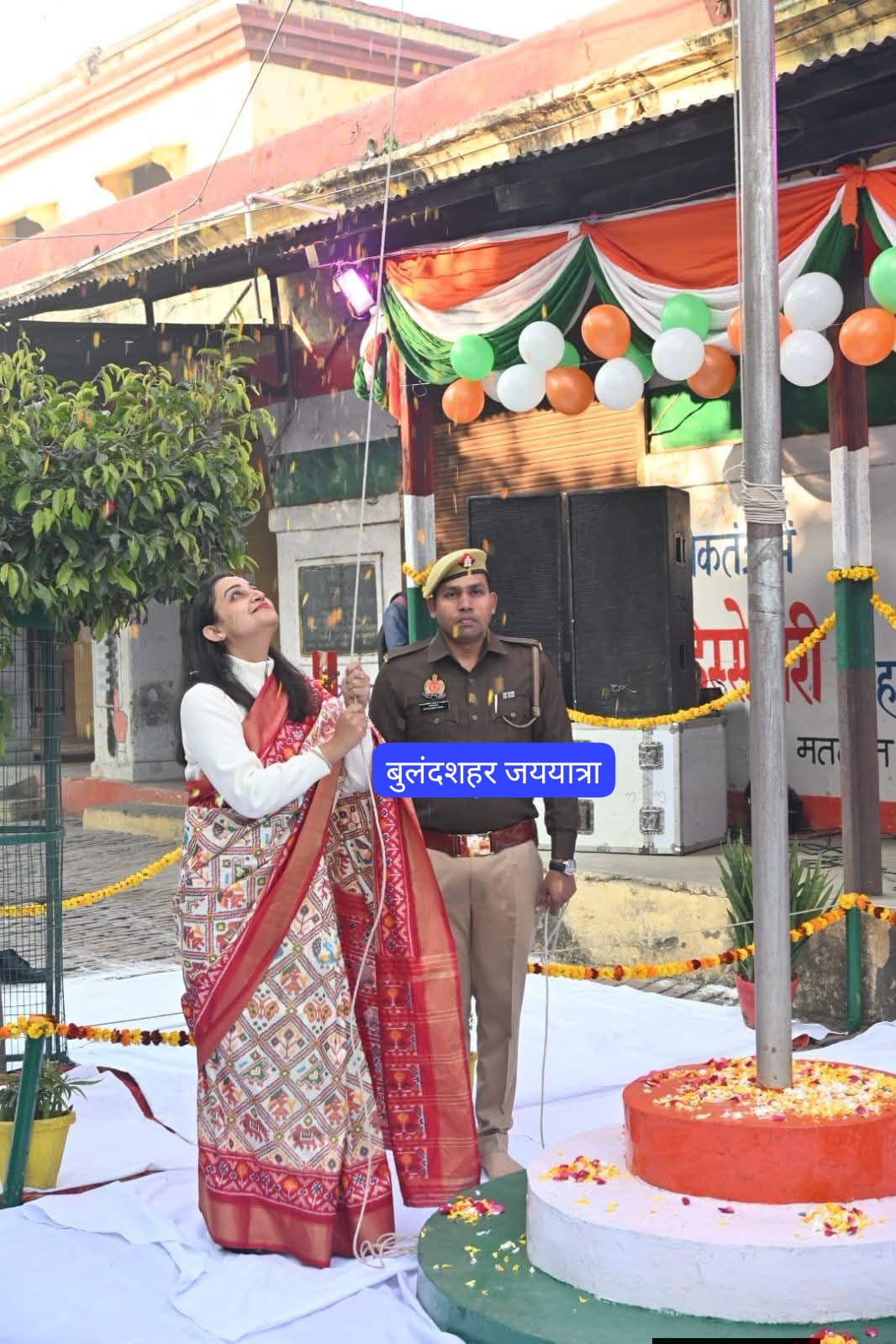 बुलंदशहर, डेस्क (जय यात्रा): जनपद बुलंदशहर के कलेक्ट्रेट परिसर में जिलाधिकारी ने 77वें गणतंत्र दिवस के अवसर पर ध्वजारोहण किया। इसी के साथ जिलाधिकारी श्रुति द्वारा कलेक्ट्रेट परिसर में प्रतिज्ञा की शपथ दिलाई गई। कार्यक्रम के दौरान पूरा माहौल देशभक्ति के रंग में रंग गया। इस अवसर पर वीर सपूतों, स्वतंत्रता सेनानियों को याद किया। इस मौके पर जिलाधिकारी श्रुति ने कहा कि विश्व में कानून आधारित शासन से चलने वाले देशों की कतारों की अतिरिक्त पंक्ति में देश खड़ा है। देश को मजबूत करने के लिए हम संकल्पित हैं। लोकतंत्र अमर रहे।