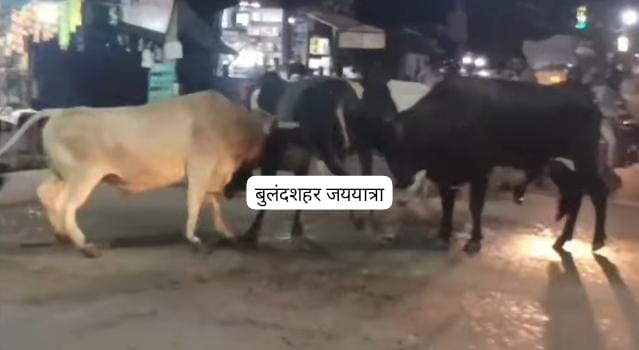 बुलंदशहर, डेस्क (जय यात्रा): जनपद बुलंदशहर के थाना पहासू क्षेत्र के अलीगढ़ चौराहे पर मंगलवार रात दो आवारा सांड अचानक भिड़ गए। देखते ही देखते दोनों सांडों की लड़ाई ने खतरनाक रूप ले लिया। उनकी चपेट में आने से एक होमगार्ड समेत कई राहगीर घायल हो गए, जबकि सड़क किनारे खड़ी कई मोटरसाइकिलें बुरी तरह क्षतिग्रस्त हो गईं।
