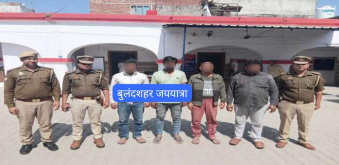 आपको बता दें कि वरिष्ठ पुलिस अधीक्षक के कुशल निर्देशन में जनपद में अपराधों पर अंकुश लगाये जाने हेतु अपराधियो के विरूद्ध चलाये जा रहे अभियान के तहत गुरुवार की रात को थाना शिकारपुर पुलिस एवं स्वाट टीम देहात द्वारा एक अभिसूचना के आधार पर गांव चीखल के पास से चार शातिर चोरों को गिरफ्तार किया गया। गिरफ्तार आरोपियों की पहचान दानिश पुत्र हाकिम निवासी रुकनसराय तेलों वाली गली थाना कोतवाली नगर जनपद बुलन्दशहर, शाहनवाज पुत्र इदरीश निवासी जामा मस्जिद के पास थाना शिकारपुर जनपद बुलन्दशहर, याकूब पुत्र सलीम अहमद निवासी देवीपुरा भवन थाना कोतवाली नगर जनपद बुलन्दशहर तथा सराफत पुत्र शौकत निवासी ग्राम भाईपुरा थाना कोतवाली देहात जनपद बुलन्दशहर के रूप में हुई है। पुलिस ने चारों आरोपियों को जेल भेज दिया है।