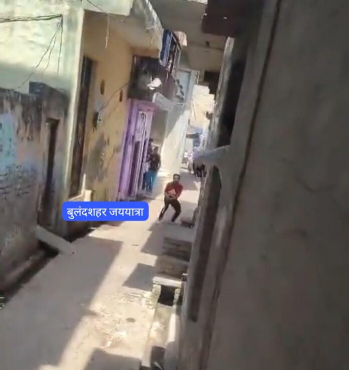 बुलंदशहर, डस्क (जय यात्रा): जनपद बुलंदशहर के थाना ककोड़ क्षेत्र में दो पक्षों के बीच हुए विवाद पथराव और फायरिंग में बदल गया। इस घटना का लाइव वीडियो सामने आने के बाद पूरे इलाके में सनसनी फैल गई है। वायरल वीडियो में एक युवक खुलेआम फायरिंग करता हुआ दिखाई दे रहा है, जबकि दोनों पक्षों के बीच जमकर पत्थरबाजी भी होती दिख रही है। घटना की सूचना मिलते ही पुलिस महकमे में हड़कंप मच गया। भारी पुलिस बल मौके पर पहुंचा और हालात को काबू में किया। स्थिति को नियंत्रित करने के लिए पुलिस को काफी मशक्कत करनी पड़ी। पुलिस ने मामले को गंभीरता से लेते हुए मुकदमा दर्ज कर लिया है। अब तक 14 लोगों को हिरासत में लिया जा चुका है, जबकि अन्य आरोपियों की तलाश में पुलिस लगातार संभावित ठिकानों पर दबिश दे रही है। पुलिस जांच कर रही है।