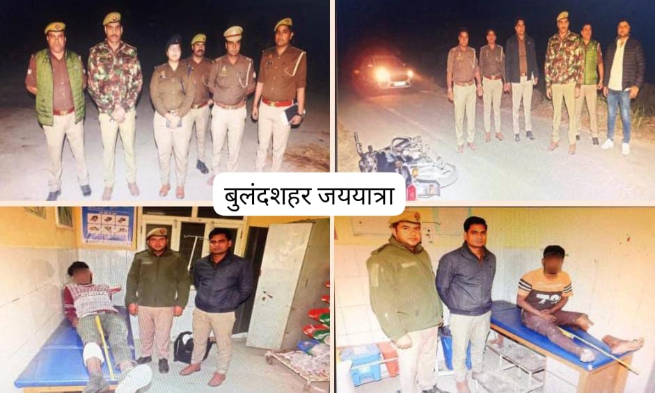 आपको बता दें कि बदमाश शातिर किस्म के चोर/लुटेरे है जिनके द्वारा 11 अक्टूबर 2025 व 16 नवंबर 2025 को थाना खुर्जा नगर क्षेत्रान्तर्गत चोरी की घटना कारित की गयी थी। जिसके सम्बन्ध में थाना खुर्जा नगर पर मुअसं- 950/25 धारा 303(3) बीएनएस व मुअसं- 1060/25 धारा 303(3) बीएनएस पंजीकृत है। बदमाशों की गिरफ्तारी के निरंतर प्रयास किये जा रहे थे। थाना खुर्जा नगर पुलिस रविवार की देर रात कसैरू रोड पर संदिग्ध व्यक्ति/वाहन की चैकिंग कर रही थी तभी दो मोटरसाइकिल पर सवार 04 संदिग्ध व्यक्ति आते हुए दिखाई दिये जिनको रूकने का इशारा किया गया, नही रुके तथा बदमाश पुलिस टीम को देखकर मोटरसाइकिल को तेजी से मोड़कर रेलवे पुल की तरफ भागने का प्रयास करने लगे। पुलिस टीम द्वारा बदमाशों का पीछा किया तो कुछ दुरी पर बदमाशों की बाइक अनियंत्रित होकर फिसल गई। अपने आपको पुलिस से घिरता देख बदमाशों द्वारा पुलिस टीम पर जान से मारने की नियत से फारिंग की गयी, पुलिस टीम द्वारा की गयी आत्मरक्षार्थ जवाबी फायरिंग में दो बदमाशों के पैर में गोली लगने से घायल हो गये जिनको अपने दो अन्य साथी सहित गिरफ्तार किया गया। गिरफ्तार आरोपियों की पहचान अमन पुत्र राजेन्द्र निवासी खेरश्वर मन्दिर के पास झुग्गी झोपडी के पास थाना लोधी जनपद अलीगढ़, गोविन्द कन्जर पुत्र सहबू निवासी निकवा तालग्राम जनपद कन्नौज, शिवम पुत्र हुकुम सिंह निवासी ग्राम जगतापुर इन्द्रगण जनपद कन्नौज तथा कन्हैया पुत्र राजेन्द्र निवासी खेरश्वर मन्दिर के पास झुग्गी झोपडी के पास थाना लोधी जनपद अलीगढ़ के रूप में हुई है। आरोपियों की गिरफ्तारी व बरामदगी के संबंध में थाना खुर्जा नगर पर मुकदमा पंजीकृत कर अग्रिम विधिक कार्यवाही करते हुए आरोपियों को न्यायालय के समक्ष प्रस्तुत किया जाएगा।