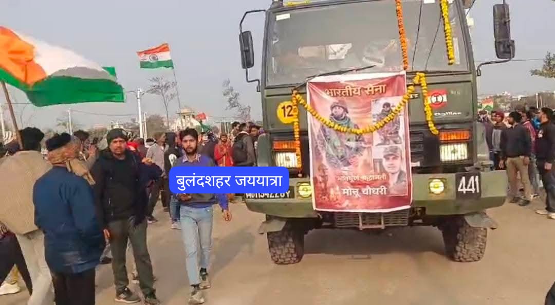 शहीद जवान मोनू चौधरी की खुर्जा से अलीगढ़ के लिए निकाली गई अंतिम यात्रा