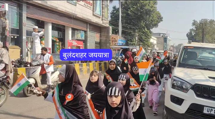 बुलंदशहर, डेस्क (जय यात्रा): 77वें गणतंत्र दिवस के अवसर पर जनपद बुलंदशहर के विभिन्न इलाकों से मुस्लिम समाज के छात्र-छात्राओं ने तिरंगा यात्रा निकाली। यह यात्रा जिस भी मार्ग से होकर गुजरी वातावरण हिंदुस्तान जिंदाबाद के नारों से गूंज उठा और तिरंगे की शान में छात्र-छात्राओं ने माहौल को देश प्रेम में रंग दिया।