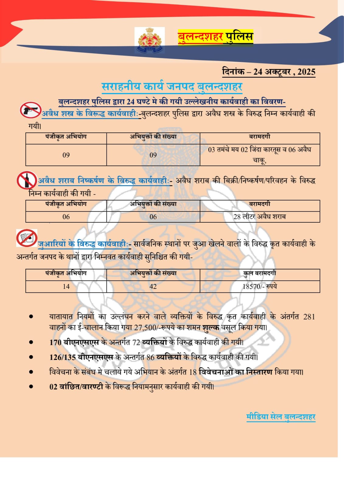 24/10/2025: जनपद बुलंदशहर में पुलिस की आज की कार्रवाई पर एक नजर