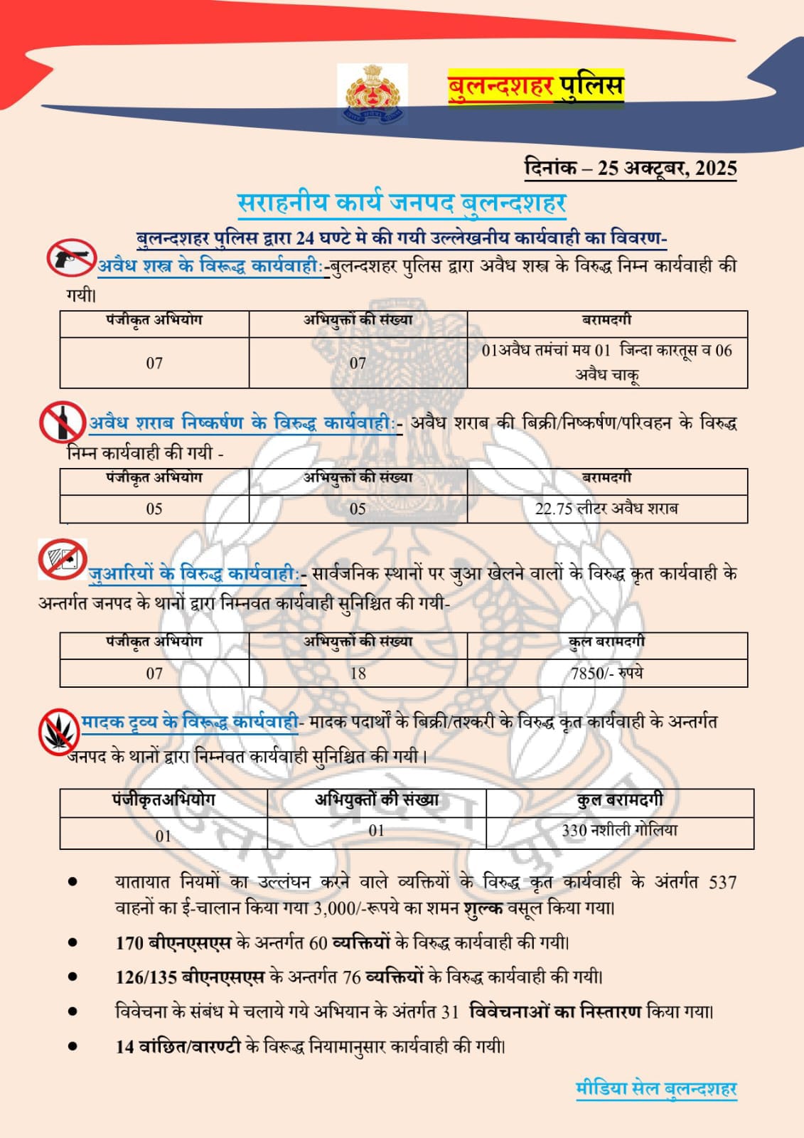 25/10/2025: जनपद बुलंदशहर में पुलिस की आज की कार्रवाई पर एक नजर