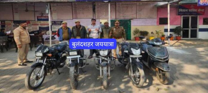बुलंदशहर, डेस्क (जय यात्रा): जनपद बुलंदशहर के थाना सिकंदराबाद की पुलिस ने गुरुवार को एक शातिर वाहन चोर को चोला रोड़ पर बंद पड़ी फैक्ट्री के पास से गिरफ्तार किया है जिसके कब्जे/निशादेही से चोरी की चार मोटरसाइकिल, एक स्कूटी व वाहन चोरी करने के उपकरण बरामद हुई है। पकड़े गए आरोपी की पहचान नाजिम पुत्र शमशाद निवासी ग्राम मोहाना थाना गुलावठी जनपद बुलन्दशहर के रूप में हुई है।