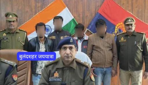 बुलंदशहर, डेस्क (जय यात्रा): जनपद बुलंदशहर के थाना शिकारपुर पुलिस ने सोमवार को शिवम वर्मा की हत्या का सफल अनावरण करते हुए घटना में संलिप्त चार को गिरफ्तार किया है जिनके कब्जे पुलिस को आलाकत्ल तमंचा व घटना में प्रयुक्त गाड़ी बरामद हुई है। गिरफ्तार आरोपियों ने पूछताछ में पुलिस को बताया कि मृतक शिवम वर्ष-2024 में आरोपी विक्की गुप्ता की पत्नी को अपने साथ भगा ले गया था। इस सम्बन्ध में थाना कोतवाली देहात पर अभियोग पंजीकृत कराया गया था। पुलिस द्वारा विक्की की पत्नी को बरामद कर लिया गया था, लेकिन मृतक शिवम उसकी पत्नी से मिलने आता रहता था। इसी बात से से क्षुब्द्ध होकर विक्की ने अपने साथियो के साथ मिलकर शिवम की हत्या की योजना बनायी तथा हत्या करने के बदले तीन लाख रुपये तय किये। 15 नवंबर 2025 को मृतक दिल्ली से आया था जिसको विक्की गुप्ता ने भूड चौराहे पर शराब पीते हुए देख लिया तथा इसकी सूचना अपने साथियों को दे दी जिनके द्वारा मृतक शिवम को अपनी गाडी बैठाकर आरोपी दिलशाद के घर पर गांव भाईपुरा ले गये तथा उसके साथ मारपीट की गयी। इसके बाद रात में शिवम को थाना शिकारपुर क्षेत्रान्तर्गत खुर्जा-शिकारपुर रोड पर काली नदी पुल पर ले जाकर गोली मारकर हत्या कर दी तथा उसके शव को काली नदी मे फैक दिया। हत्या के बाद आरोपी विक्की गुप्ता ने अपने साथियो को 2.10 लाख रुपये दे दिये थे।