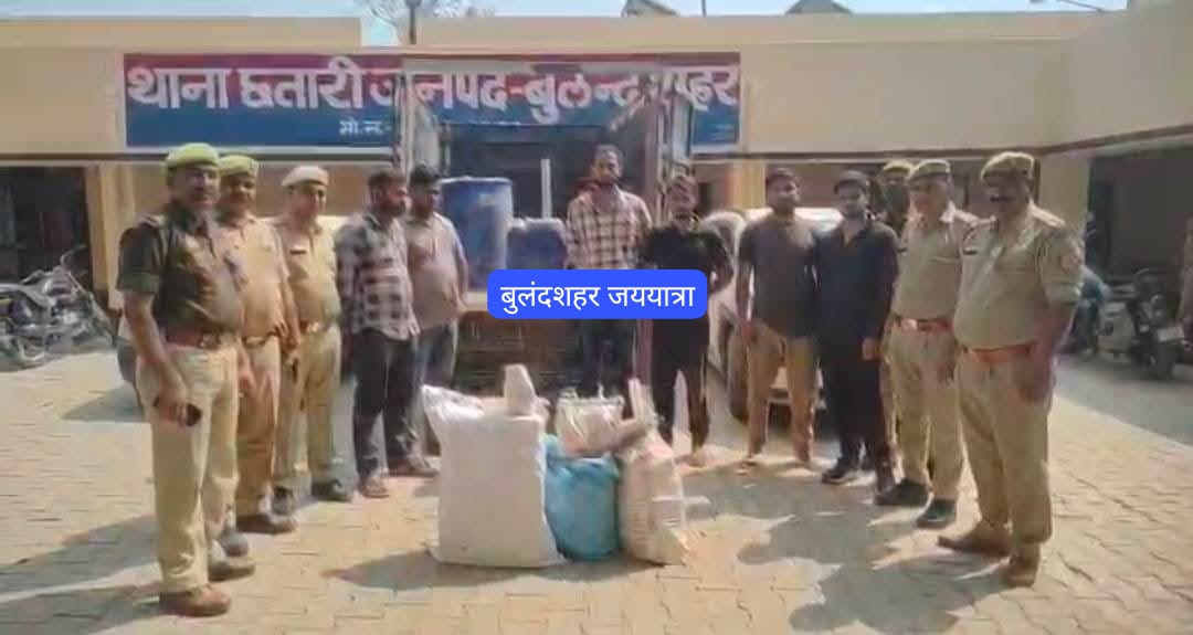 बुलंदशहर, डेस्क (जय यात्रा): जनपद बुलंदशहर के थाना छतारी की पुलिस ने अपमिश्रित जहरीली शराब बनाने वाले छह शातिर तस्करों को गिरफ्तार किया है। गिरफ्तार आरोपियों ने पूछताछ में बताया कि हम सभी के द्वारा पानी में केमिकल व रंग मिलाकर अमिश्रित शराब बनाई जाती है जिसको हम मिस इंडिया मार्का फ्रूटी नुमा रेपर में भर देते है एवं पैकिंग मशीन की मदद से पैक कर देते है, उसके बाद हम लोग मिस इंडिया मार्का फ्रूटी पर फर्जी बार-कोड लगाते है जिसको हम लोग गत्ते के कार्टून में पैक कर छोटा हाथी वाहन व कार के माध्यम से ठेको व अन्य जगहों पर विक्रय कर देते है।