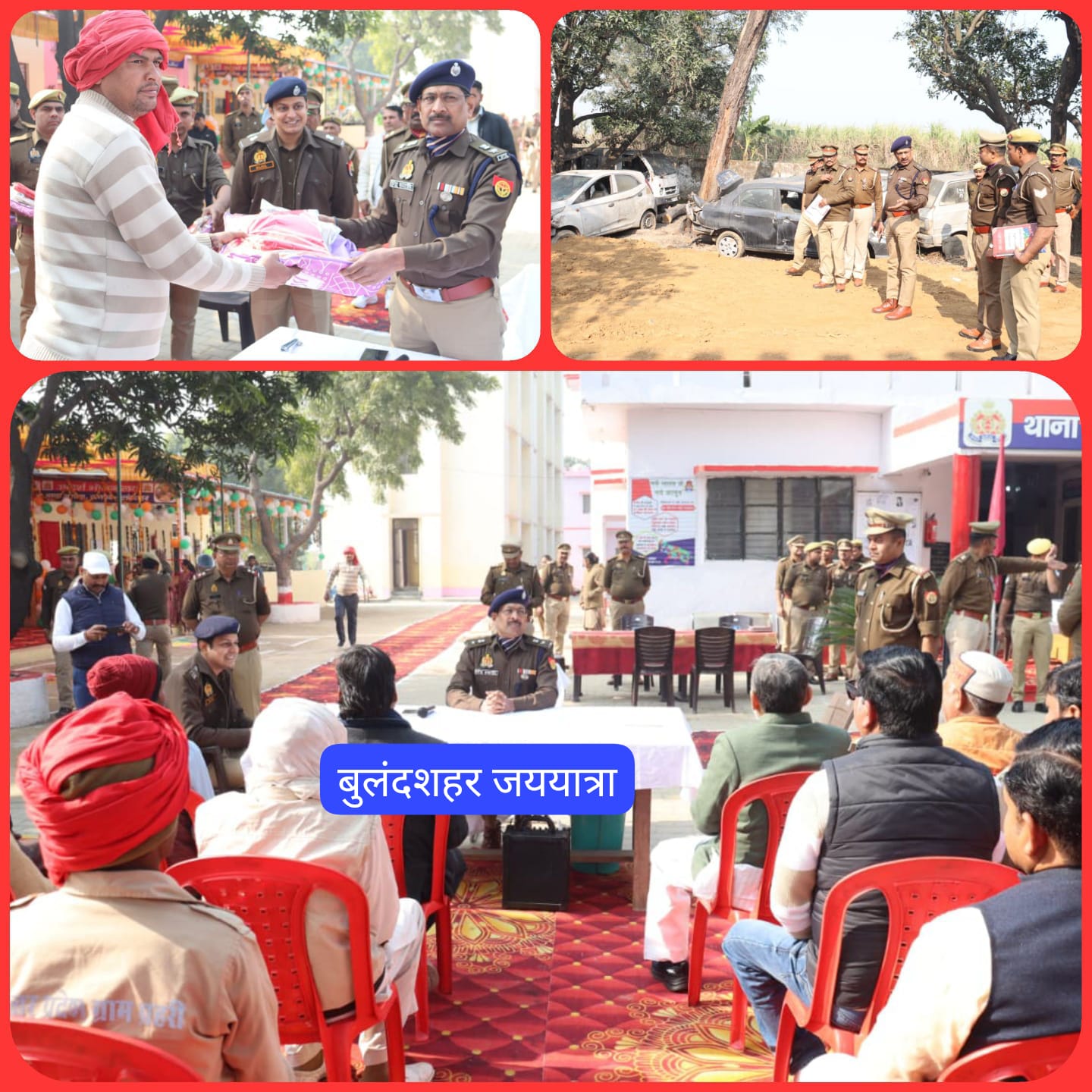 बुलंदशहर, डेस्क (जय यात्रा): जनपद बुलन्दशहर के वरिष्ठ पुलिस अधीक्षक बुलन्दशहर द्वारा बुधवार को थाना अगौता का वार्षिक निरीक्षण किया गया। इस दौरान थाना परिसर में नवनिर्मित आदर्श भोजनालय का फीता काटकर विधिवत उद्घाटन किया गया। एसएसपी ने भोजनालय की व्यवस्थाओं की सराहना करते हुए इसे पुलिसकर्मियों के स्वास्थ्य व कार्यक्षमता के लिए महत्वपूर्ण बताया। निरीक्षण के दौरान एसएसपी ने थाना कार्यालय, मालखाना, हवालात, रिकॉर्ड रजिस्टर, शस्त्रागार व साफ-सफाई व्यवस्था का गहन अवलोकन किया। उन्होंने अधिकारियों व कर्मचारियों को बेहतर पुलिसिंग, अनुशासन एवं जनता के प्रति संवेदनशील व्यवहार बनाए रखने के निर्देश दिए। इसके उपरांत एसएसपी द्वारा थाना क्षेत्र के चौकीदारों को ठंड से बचाव हेतु कंबल, कोट व पगड़ी वितरित की गई। चौकीदारों का उत्साहवर्धन करते हुए उन्होंने कहा कि कानून-व्यवस्था बनाए रखने में चौकीदारों की भूमिका अहम है और पुलिस उनके साथ सदैव खड़ी है। कार्यक्रम के अंत में क्षेत्र के सभ्रांत व्यक्तियों व चौकीदारों के साथ शांति समिति की बैठक आयोजित की गई। बैठक में आपसी समन्वय, सौहार्दपूर्ण माहौल बनाए रखने, अपराध नियंत्रण एवं आगामी त्योहारों को शांतिपूर्ण ढंग से संपन्न कराने को लेकर विचार-विमर्श किया गया। निरीक्षण व कार्यक्रम के दौरान थाना प्रभारी सहित पुलिस अधिकारी-कर्मचारी, क्षेत्रीय गणमान्य नागरिक व चौकीदार मौजूद रहे।