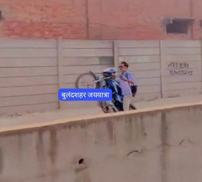 बुलंदशहर, डेस्क (जय यात्रा): जनपद बुलंदशहर के थाना खुर्जा नगर क्षेत्र का एक वीडियो सोशल मीडिया पर वायरल हो रहा है वायरल वीडियो में एक युवक बाइक का एक पहिया उठाकर स्टंट करता हुआ नजर आ रहा है। युवक ने न ही हेलमेट लगा रखा है। रील बनाकर फैमस होने के चक्कर में युवक अपने साथ-साथ औरों की जान को भी जोखिम में डाल रहा है। लोगों ने प्रशासन से मामले में कार्यवाही की मांग की है।