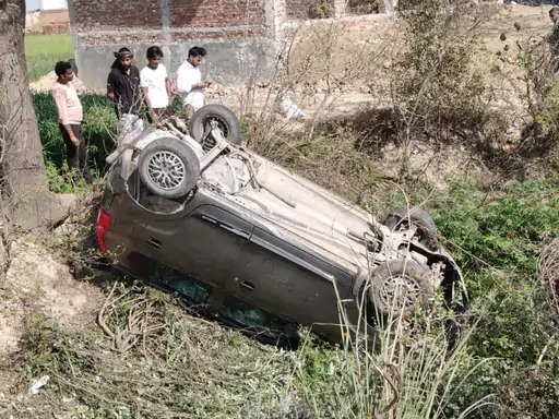 अज्ञात वाहन को बचाने के चक्कर में गाड़ी खाई में पलटी