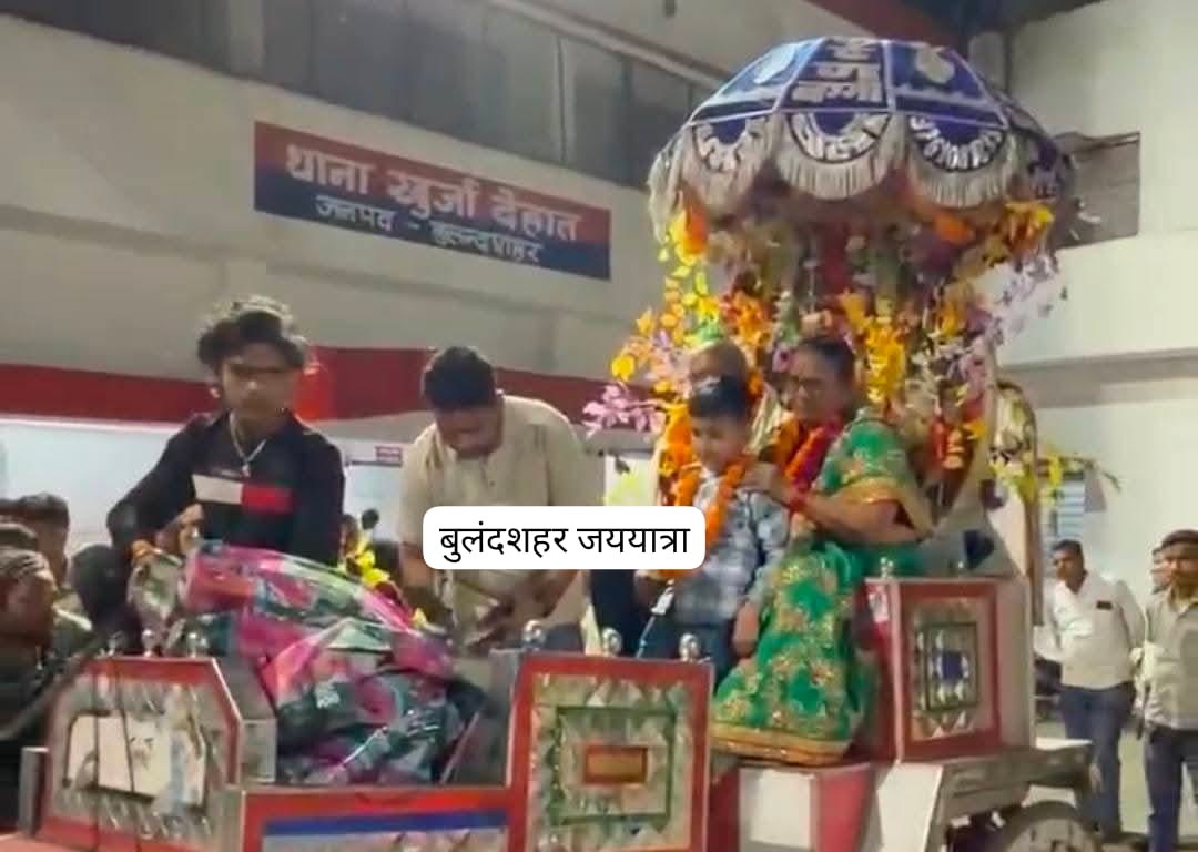 बुलंदशहर, डेस्क (जय यात्रा): जनपद बुलंदशहर के थाना खुर्जा देहात पर कार्यरत उप निरीक्षक प्रदीप चौहान का विदाई समारोह ढोल बाजे और घोड़ा बग्गी के साथ किया गया। दरोगा के विदाई समारोह का यह वीडियो सोशल मीडिया पर जमकर वायरल हो रहा है। समारोह में घोड़ा बग्गी पर दरोगा व उनकी पत्नी को दूल्हा-दुल्हन की तरह बैठाकर विदा किया गया। दरोगा मूलरूप से बिजनौर जिले के गांव परवानपुर के रहने वाले हैं। वर्ष 1985 में यूपी पुलिस में भर्ती हुए थे।