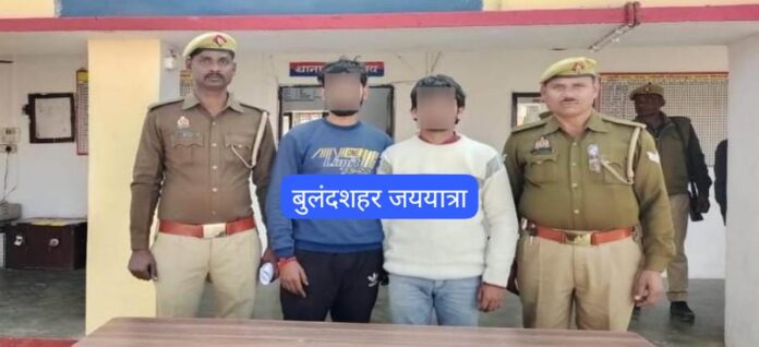 बुलंदशहर, डेस्क (जय यात्रा): जनपद बुलंदशहर के थाना डिबाई की पुलिस ने सोमवार को गैरइरादतन हत्या की घटना में संलिप्त दो आरोपियों को गांव चौगानपुर मोड तहसील गेट के सामने से गिरफ्तार किया है। गिरफ्तार आरोपियों की पहचान भरत पुत्र रामेश्वर दयाल निवासी ग्राम भीमपुर थाना डिबाई जनपद बुलन्दशहर तथा राज वर्मा पुत्र ईश्वरी प्रसाद निवासी ग्राम चौगानपुर थाना डिबाई जनपद बुलन्दशहर के रूप में हुई है।