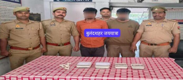 बुलंदशहर, डेस्क (जय यात्रा): जनपद बुलंदशहर के थाना औरंगाबाद की पुलिस ने पशु व्यापारी से लूट की घटना लिप्त दो आरोपियों को मात्र छह घंटे के भीतर बरामद कर लिया है। आरोपियों के कब्जे ऐ पुलिस को लूटे गए 93 हजार रूपए, एक मोबाइल, एक अवैध तमँचा मय एक जिन्दा कारतूस व एक बाइक बरामद हुई है। पकड़े गए आरोपियों की पहचान सचिन उर्फ पप्पू पुत्र यशवीर सिंह निवासी ग्राम जटवाई थाना जहाँगीराबाद जनपद बुलन्दशहर व कपिल पुत्र दलवीर सिंह निवासी ग्राम जटवाई थाना जहाँगीराबाद जनपद बुलन्दशहर के रूप में हुई है।